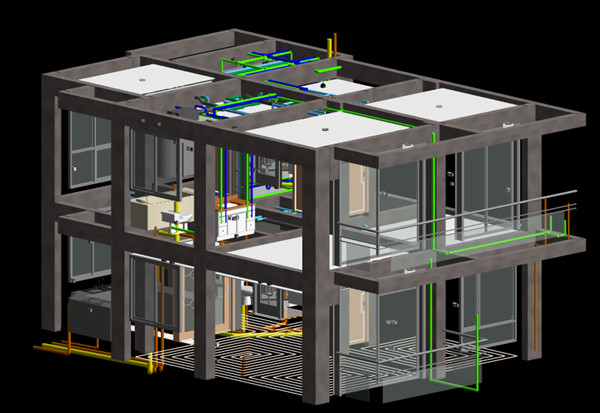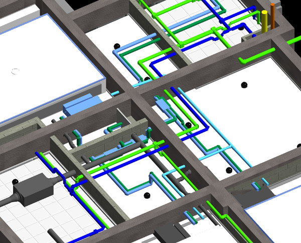 通過BIM技術(shù),將各專業(yè)的CAD圖紙集成為統(tǒng)一的三維模型,將一些平面上難以發(fā)現(xiàn)的問題,直觀的暴露出來,并對其進(jìn)行調(diào)整。