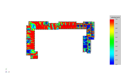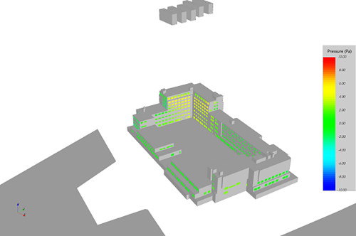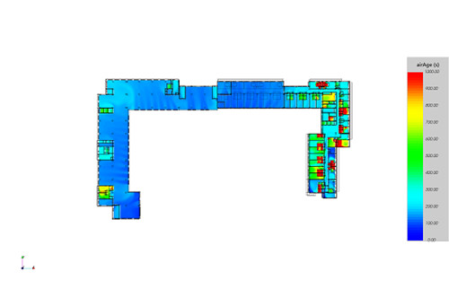 通過(guò)對(duì)本項(xiàng)目進(jìn)行建筑室內(nèi)風(fēng)環(huán)境分析可知:過(guò)渡季典型工況下主要功能房間平均自然通風(fēng)換氣次數(shù)不小于2次/h的面積比例達(dá)到99.23%。