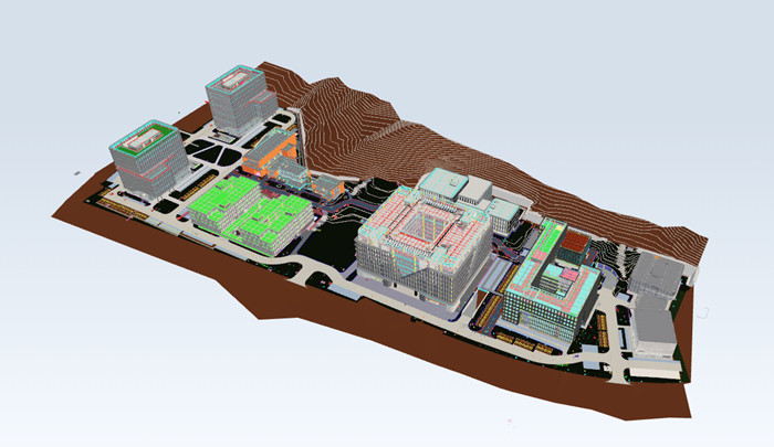 本項(xiàng)目BIM 主要服務(wù)范圍有:地下室、單體(8幢)及室外。