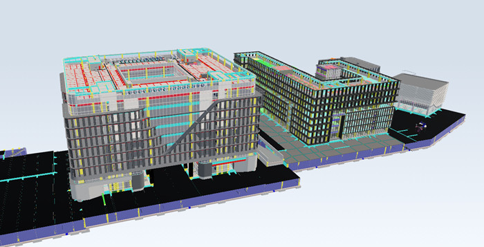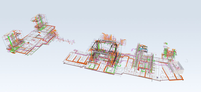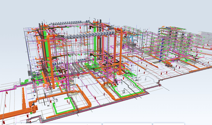 3. 安排人員以設(shè)計(jì)院CAD圖紙為依據(jù)進(jìn)行全專業(yè)建模。 根據(jù)項(xiàng)目現(xiàn)場(chǎng)進(jìn)度,合理安排BIM工程師進(jìn)行建模工作,過程中及時(shí)與設(shè)計(jì)溝通,為裝修設(shè)計(jì)提供了設(shè)計(jì)依據(jù)。