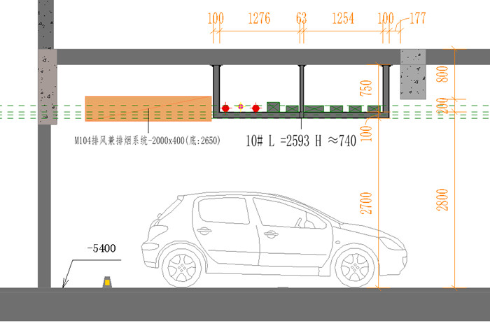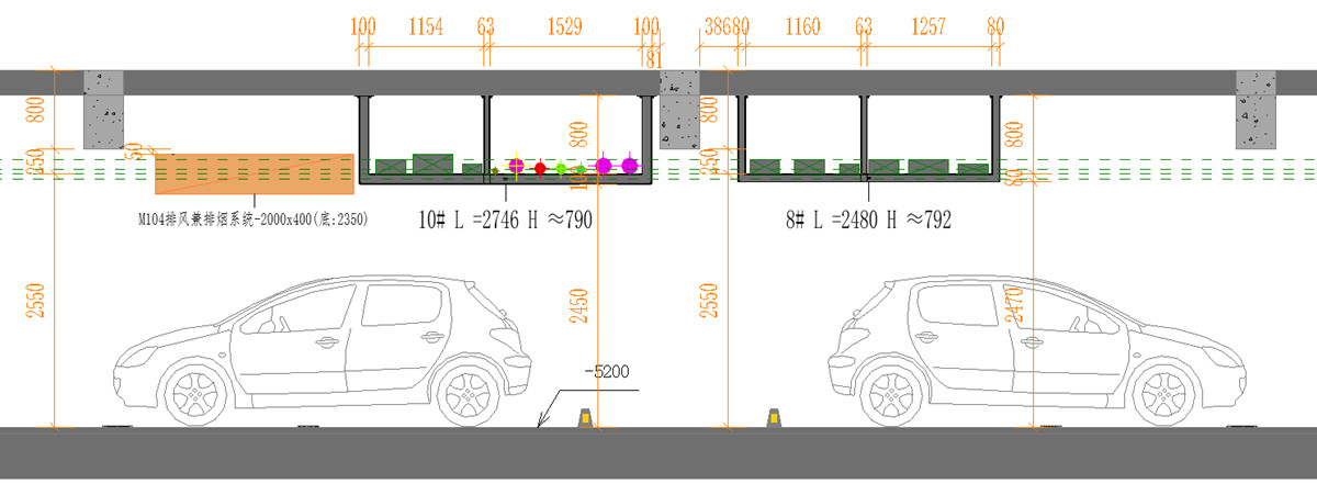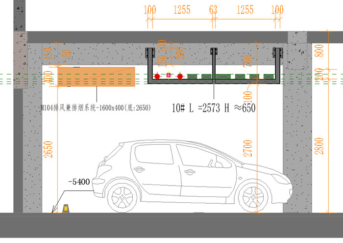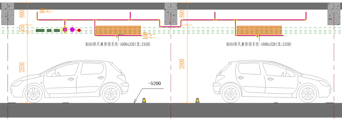 在車庫的綜合管線盡量成排安裝,相同專業(yè)管線盡量相鄰安裝。管線盡量安裝綜合支架,節(jié)省成本,同時使整體美觀,遇風(fēng)管上翻,繞開防火卷簾門。